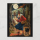 Surpreenda seus amigos com um cartão postal fantástico de Dia das Bruxas com uma bruxa caminhando com seu gato e coruja numa noite iluminada pela lua.