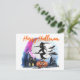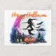 Cartão Postal da Bruxa Voadora Aquarela de Halloween
