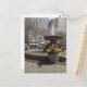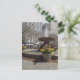 O cartão postal apresenta uma fotografia original de um plantador de tulipas amarelas e a fonte no Parque Bryant, com a rua 42 à distância. Tirada na Nova Iorque, NYC.