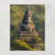 Cenário tranquilo da estátua buda indonésia sentada ao lado de montanhas verdes.