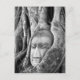 Linda foto em preto e branco de uma cabeça de estátua Buda com raízes de árvore crescendo ao seu redor. Tirada em Ayutthaya, Tailândia.