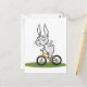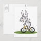 Uma fotografia divertida e envolvente de um coelho andando de bicicleta.