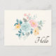 Cartão Postal Buquê de Flores Rosa e Azul Elegante Olá