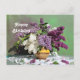 Cartão Postal Buquê de Lilases Roxas e Brancas de Aniversário