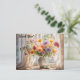 Um belo buquê misto de flores numa janela ensolarada, com uma chávena de chá ao lado pela manhã, faz um lindo cartão-postal de agradecimento.