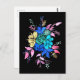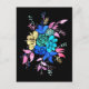 um buquê floral colorido em muitas cores diferentes, com muitas flores, flores e elementos florais diferentes num cartão postal preto