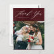 Cartão Postal Burgundy Elegant Script Vertical Weding Obrigado