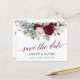 Roteiro de Caligrafia Moderno, Noivado Floral de Berguesia Burgundy, Casamento Salve O Cartão-Postal de Data inclui peônias, folhas de eucalipto e outros belos verdes.