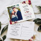 Cartão Postal Burgundy Red Floral Chic Salve a Foto da Data