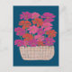 Desenho em tinta de um cheio de cesto de flores bonito Cosmo em pinks e laranjas.