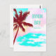 Poster de viagens de impressão de uma palmeira na Baía de Byron, uma cidade costeira na NSW, Austrália em um estilo tradicional e colorido de impressão de viagem de arte. Céu azul, veraneio com hipster de palmeiras tropicais no país da Austrália.