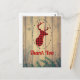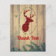Cartão postal de agradecimento de festa com estilo rústico. Projetado com uma cabeça de veado com galhadas, feito de xadrez vermelho. Uma moldura oval sofisticada envolve a imagem. Tábuas de madeira falsa lhe dão um clima campestre ao ar livre.