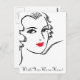 Desenho em linha vítrea de uma jovem bonito com cabelo ondulado. A única cor são os lábios vermelhos dela. Há texto personalizável em cartões postais e cartões. Perfeito para aniversários, parabéns, convites ou um "Eu queria que você estivesse aqui"