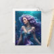Uma bela sereia com cabelo roxo cascata no oceano.