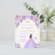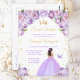 Este convite de aniversário de sweet sixteen elegante e glamoroso apresenta uma bela princesa com cabelos castanhos em um vestido de baile roxo claro. O texto combina caligrafia manuscrita e fontes modernas sem serifa para um visual sofisticado e elegante. Os arranjos florais, borboleta e confetes dourados criam a combinação perfeita de rústico e chique.
