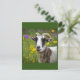 Este postal apresenta uma cabra bonita num campo de flores silvestres.