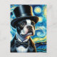 Cartão Postal Cachorro Boston Terrier Fofo com Cartola Van Gogh