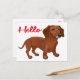 Cartões-postais de cão saudáveis são o alternativo econômico para cartões de saudação caros quando você quer enviar uma nota rápida para a família e os amigos. Doce e simples, este cartão postal canino divertido apresenta um desenho desenhado à mão - cachorro marrom Dachshund Dachshund com Hello impresso em uma fonte vermelha em negrito destacada contra um fundo branco nítido. A parte traseira do cartão é vazio da sua mensagem pessoal. Cartões de posto Dachshund são perfeitos para organizações de adoção e resgate de cães * Saudações - olá, amor, pensar em você, saudades de você, etc * Apreciação por presentes * Empresas - veterinários, criadores, criadores, formadores * Fundraisers e obras de caridade * Dons de papelaria - empacotar alguns cartões postais com uma fita fofinha