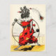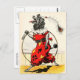 Palhaço, O Cachorro do Circo (poodle) andando sobre as pernas traseiras com um aro de hula batendo sobre os ombros. Ele está vestido para o seu ato de circo, vestindo uma roupa vermelha vibrante e uma pena na cabeça. Vintage Illustration de A. Vimar, c.1917