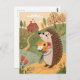 Uma ilustração engraçada do estilo de arte popular de um ouriço com um punhado de flores, o postal perfeito para o aniversário e outros parabéns para mostrar seu amor a um amante de os animais.
