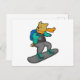 Cartão Postal Cachorro como Snowboarder com Snowboard & Mochila