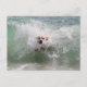 Cartão Postal Cachorro correndo pela Onda Oceânica, Surf, Praia