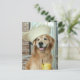 Cartão Postal Cachorro de ouro no verão feliz com palha