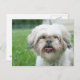 Cachorro esmagado ou envergonhado, possivelmente um shih tzu com sua língua pegando cartaz de amantes de cachorros