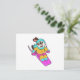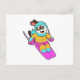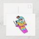 Cartão Postal Cachorro esquiador com esqui e cachecol