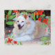 Este cartão-postal apresenta uma das fotografias do meu cão branco e dourado "Border Collie mix". Adicionei uma camada de flores vermelhas aquáticas como uma borda. Quem ama cachorros vai gostar de receber esse cartão-postal.