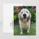 Envie seus agradecimentos a alguém com este cartão postal fofo! O design apresenta uma fotografia de um cão golden retriever sorridente ao ar livre em frente a flores coloridas. O texto personalizável no verso diz "Obrigado! Sua gentileza é apreciada."