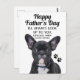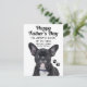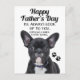 Feliz Dia de os pais. Eu Sempre Te Procuro... Especialmente quando você está comendo. Saudações engraçadas e bonitas para um pai que tem um cachorro. Cartão de saudação de dia de os pais do cachorro com uma foto de perto de um filhote preto bonito de cachorrinho francês.