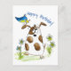 Esta é uma pintura mestiça original de um cão pintado com fezes brancas e um pássaro azul com um osso.