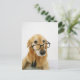 Cartão Postal Cachorro vestindo gravata e óculos sentados na cad