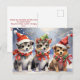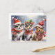 Cartão Postal Cachorros de Natal bonitos com Chapéus Santa