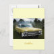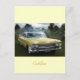 Um cartão postal com um Cadillac amarelo trabalho de arte dos anos 50.