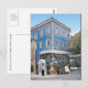 Cartão postal do Cafe Paris, um café azul na esquina da vila turística pitoresca de Sintra, perto de Lisboa, Portugal. Fotografia digital de Sue Melvin (efeitos de enrolamento de Canvas e bolhas adicionados)