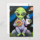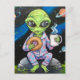 Uma alienígena se senta em uma rocha vestindo PJs com café e bagel na mão pronto para começar a arte matinal gerada pelo gifi AI
