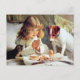 Cartão Postal Café da manhã na cama: Menina, Terrier e Gato Gati