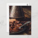 Café com colher de café moído, bastões de canela e anis estrelado em placa metálica