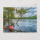Recupere-se logo cartão postal com um kayak vermelho flutuando perto da margem perto de uma pequena e torta árvore num nublado manhã de verão em Oak Grove Arkansas, Estados Unidos no Table Rock Lake. Procurando mais impressões ou produtos? Sinta-se à vontade para visitar minha loja: http://www.zazzle.com/timelessmomentsphtgy