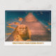 Quando você está querendo compartilhar suas experiências, enviar um cartão postal a um amigo ou amado é um gesto doce. Embora as mídias sociais tenham facilitado muito o compartilhamento digital de suas aventuras, você ainda pode abraçar o encanto clássico de um simples cartão-postal. No entanto, tornámo-lo ainda mais personalizado. Em vez de comprar um postal de um compro local, você pode usar a plataforma Zazzle para personalizar o texto e até compartilhar suas próprias fotos. A fotografia é original fornecida pelo designer, mas você é encorajado a substituí-la por uma de suas próprias aventuras na cidade. Aqui temos uma foto do esfinge com uma Pirâmide Excelente no fundo.