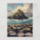 Um cartão postal da Calçada do Gigante, mostrando suas icônicas colunas de pedra hexagonais que se estendem até o mar sob um céu dramático.