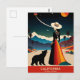 Descubra o fascínio da "Califórnia: A Terra dos Sonhos" com este viagem com cartão-postal espantoso!, Nesta cena encantadora, uma mulher com um vestido vibrante e um chapéu largo ao lado de um urso, ambas olhando para um céu noturno que respira adornado de planetas e estrelas. O pano de fundo apresenta montanhas majestosas com capas de neve e palmeiras balançando, incorporando perfeitamente a beleza diversa da Califórnia. Acima desse quadro branco, a frase "Califórnia: A Terra dos Sonhos" captura a magia e a aventura que se espera no Estado Ouro. Celebre a sua aventura com este cartão postal perfeito e mantenha viva a sua luxúria!
