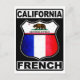 Design francês da Califórnia, no estilo de um legal sinal de estrada americano. O texto California French é no topo e no fim, com a bandeira do Estado da Califórnia e a bandeira da França dentro na placa de rota. Excelente para os californianos de ascendência francesa, e para ex-pais na República da Califórnia!