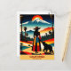 Celebrar o calor e a vibração da "California: Onde Sunshine Mora" com este viagem atraente! Este viagem captivador apresenta uma mulher com um vestido multicolorido e um chapéu ao lado de um urso, ambos olhando para uma paisagem espantosa que combina palmeiras e uma montanha com capas de neve, todos banhados no brilho quente de um pôr do sol dramático. Com o seu estilo retrô, surreal, a trabalho de arte encapsula lindamente a paisagem diversa e o espírito vibrante da Califórnia, fazer-a como um tributo perfeito ao encantador alento do Estado Ouro. Celebre a sua aventura com este cartão postal perfeito e mantenha viva a sua luxúria!