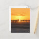 Stunning view of the sun setting behind a peer in California with the fading light highlighting a choppy sea.