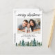 Script de Caligrafia Elegante Moderno, Árvores de Pinheiros de Aquarela, Cartão-postal de Natal da Família Feliz de Natal