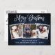 Cartão postal de Natal Merry 3 Photo Holiday - Madeira Azul Rústica País