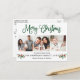 Cartão postal de Natal Merry 3 Photo Holiday - Script Verde, Watercolor Holly Berries
